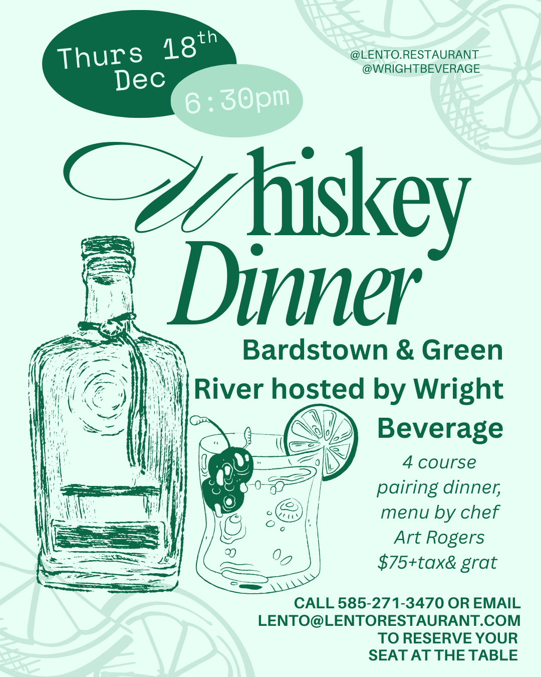 Hours indicate our last seating for reservations and walk-ins, kitchen closes 30 minutes later & bar is last call.